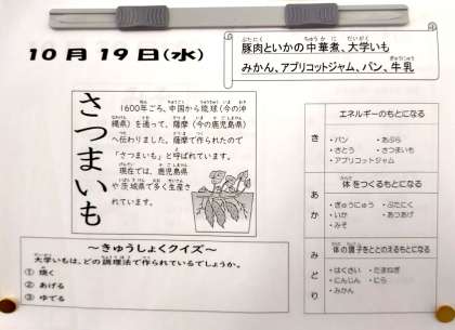 10月19日(水)の給食は
