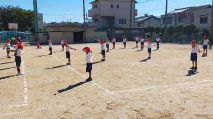 1年生は運動場で元気いっぱい体育の授業を楽しんでいました