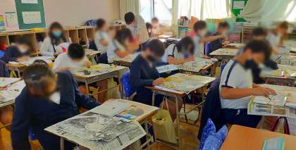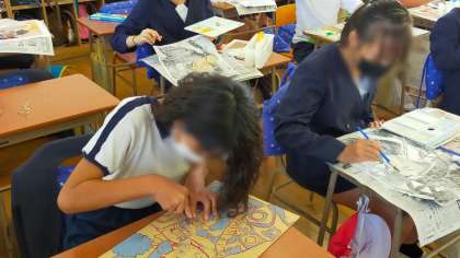 さすが6年生、彫刻刀を使ってうまく版を作成