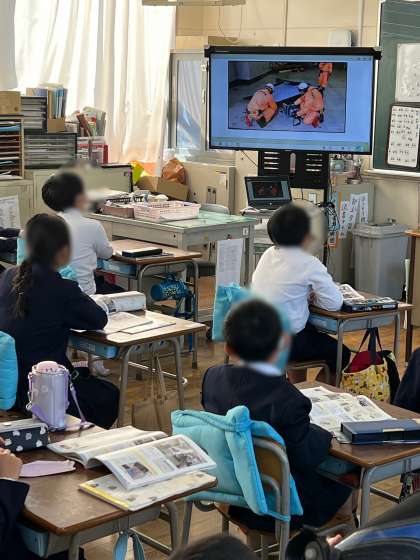 消防署での仕事についての動画や画像を見て、知っていることや疑問に思ったことを話し合いました。