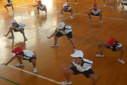 3・4年生は、ソーラン節をアップテンポのリズムにのって踊っています。踊りがピシッとそろうと、とてもかっこいいです。踊りはもちろんですが、それ以上に子どもたちの気合のこもった声!