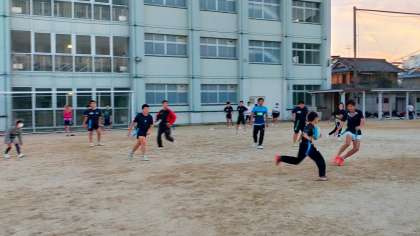 月末の生野区タグラグビー大会に参加する児童が