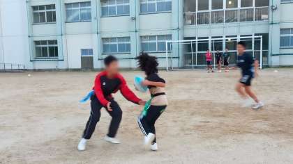 桃谷中学校ラグビー部の部員たちに教えてもらいに行きました
