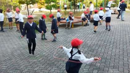 子どもたちは元気になわとびタイムにチャレンジ!