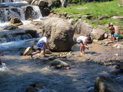 5年生の林間の2日目の魚つかみの様子です。とった魚は焼いてもらって食べました。とてもおいしかったです。