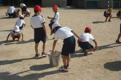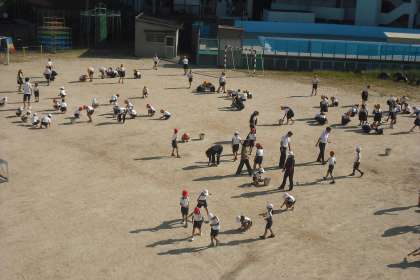 はだしで演技をする学年もあるので、小さな石でもけがのもとになります。