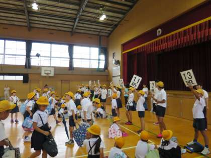 台風を想定し、避難訓練を行いました。みんな、真剣に取り組めていましたね。避難後は登校班のリーダーを先頭に集団下校を行いました。今週は、金曜日に大阪880万人訓練にも参加します。