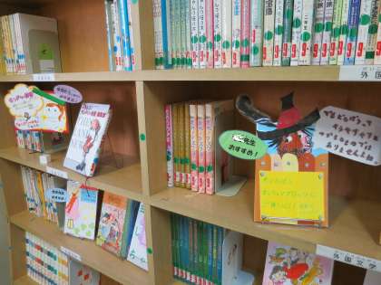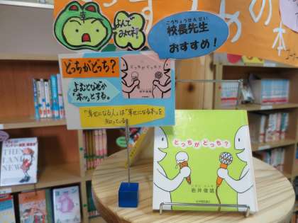 図書室には、先生方のおすすめの本と先生方が作った本のポップが飾られています!図書室のいろいろな場所にあります。楽しいポップがいっぱいです!