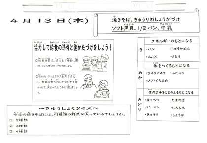 4月13日(木)の給食は