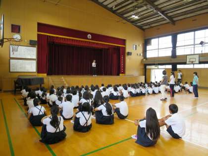 2学期最初の児童朝会でした。校長先生からは、シルバーウィーク中の祝日についてのお話がありました。敬老の日や秋分の日は、どんな日でしたか?お家の方にお話してみましょう!今日の朝会の集合も早く、10分前には1番に講堂に集まった児童が座って待っていました。