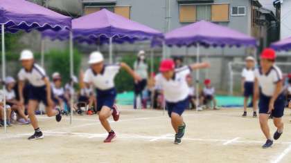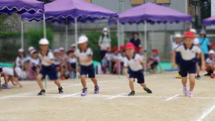 スタートラインに並んだ子どもたちの表情は真剣そのもの