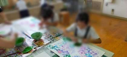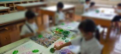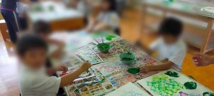 はっぱに絵の具をぬってぺったん