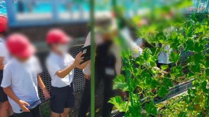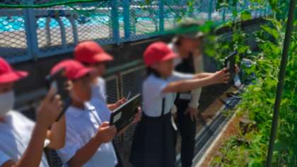 今日はみんなで学習園の観察