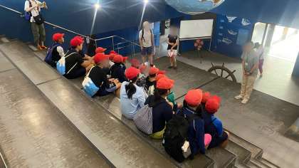青少年海洋センターの職員の方に挨拶をして、活動を行う研修棟からの避難経路を確認しました。