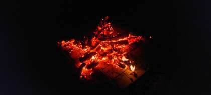 花火が終わると、そこには星が浮かび上がりました。みんなで楽しんだキャンプファイヤーの残り火に、心の中でひとつだけ願い事をします。