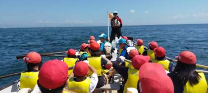 「1、2、そーれ!」と掛け声をしながら海に出ました!