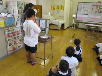 今週は視力検査があり、今日は1・2年生が検査の日でした。視力はどうだったでしょうか?ゲームや読書の時など普段近いところばかりを見ていると、視力の低下につながります。意識して遠くを見るようにするなど、目を大切にしましょう!