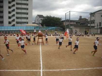 今日も、1時間目から全体練習を行いました。今日は応援合戦の練習と、礼の仕方や行進を中心に行いました。