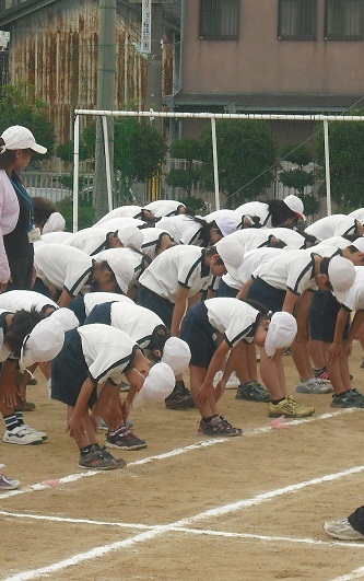 礼は随分とうまくなってきました。当日は何度も礼をします。お家の人にかっこいい礼を見ていただきましょう。