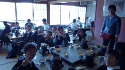 みんなでいただく最後のご飯は、釜飯です。おいしくいただいています。