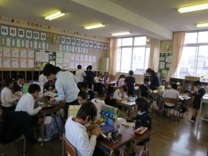 今週の土曜日は、作品展・学校公開です。子どもたちは、毎日コツコツと絵画や工作、習字などの作品の仕上げをがんばっています。完成が楽しみです!!