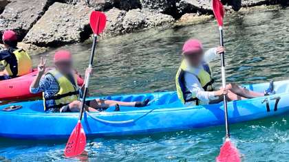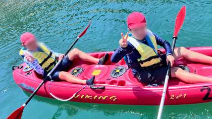 前後で息を合わせて、右に曲がったり後ろに進んだり♪とっても上手に漕いでいます!