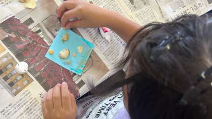 貝殻を並べたり、何かに見立てて絵を描いたり、とっても素敵な作品ができました(^^)