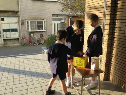 今週は、赤い羽根共同募金週間です。登校時に運営委員児童が正面玄関で募金を呼びかけています。ご協力ありがとうございます。