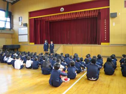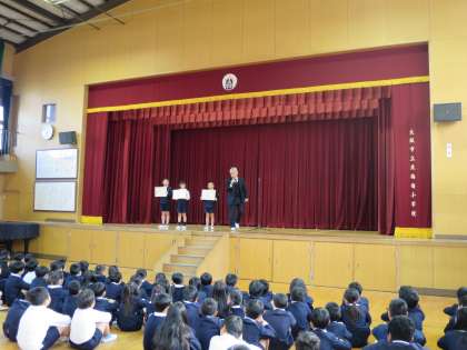 MOAの絵画コンクールの表彰もあり、3名の児童が表彰されました。おめでとうございます(*^_^*) また、健康委員会から歯みがきについてのお知らせもありました。