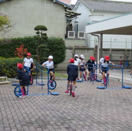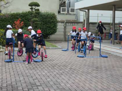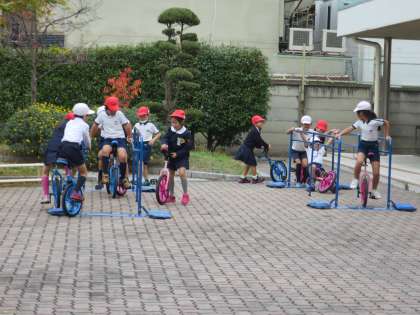 一輪車の補助具を購入しました。早速、中庭で楽しそうに練習しています。運動を楽しみながら、できることや技を増やしていけたらいいですね。
