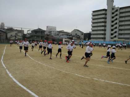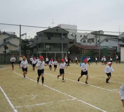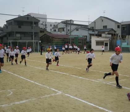 かけあしタイムが始まりました。初日の今日は、3分間自分のペースに合わせてかけあしをしました。寒さを吹き飛ばすくらい、一生懸命走っていました!