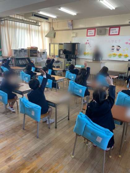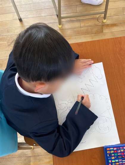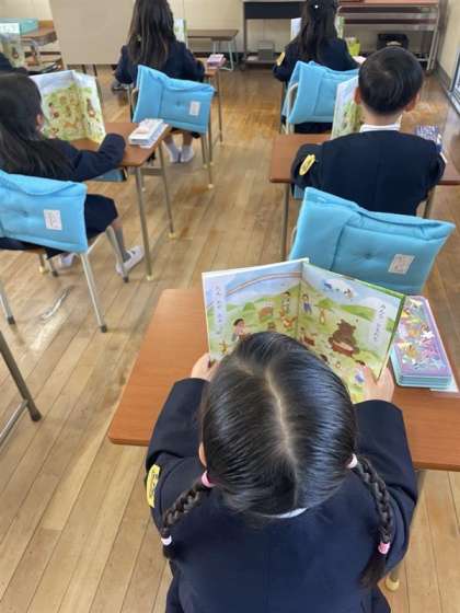 1年生の教室をのぞくと、休み時間に校庭に咲いていた花の種類や色をしっかり手を挙げて発表していました。国語では、はじめて教科書を開き、先生の後に続いて大きな声で読むことができていました。姿勢を褒められてとってもうれしそうな1年生。この後はえんぴつの持ち方を確認し、いろんな線をていねいになぞっていました。