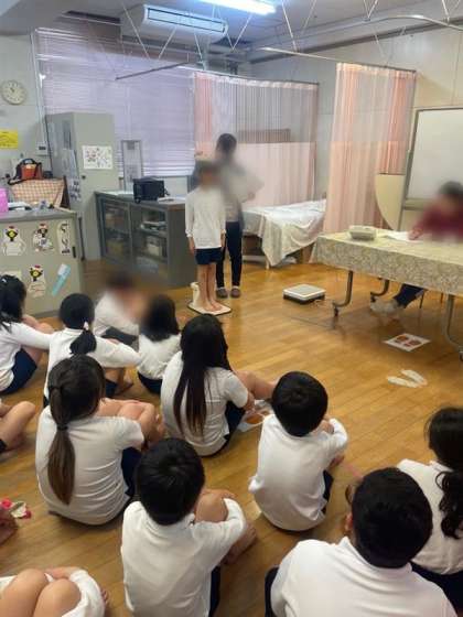 今週は各学年で発育測定を行っています。春休みの間に急に大きくなったように感じる4年生。どれくらい背が伸びたかな?みんなドキドキしながら自分の順番を待っていました。