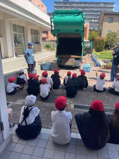 パッカー車の仕組みを見せてもらった後は、多目的室で学習を行いました。