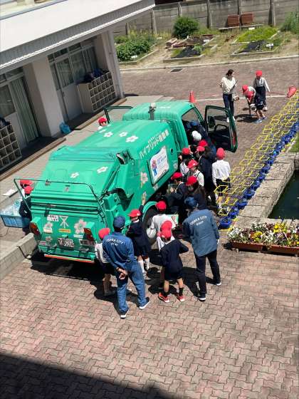 4年生の社会科の学習で、パッカー車と、環境局の方が学校に来てくれました。