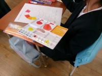 6年生は三原色を使って、たけのこの色を塗っていました。