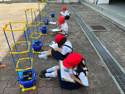連休明けにまいたあさがおの芽が出て、立派な本葉が育ち始めました。