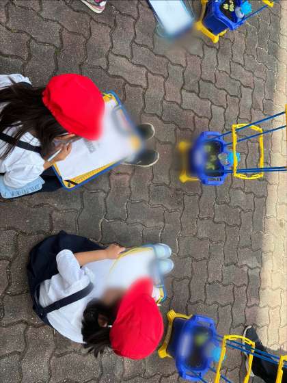 葉に模様があることや、うぶ毛が生えていることに気づき、上手にカードにかくことができていました。