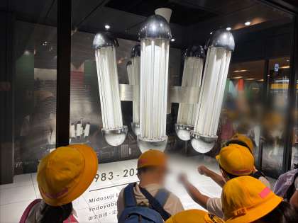 森ノ宮駅の構内には、1930年代から御堂筋線の駅に備えられていた照明が展示されていました。