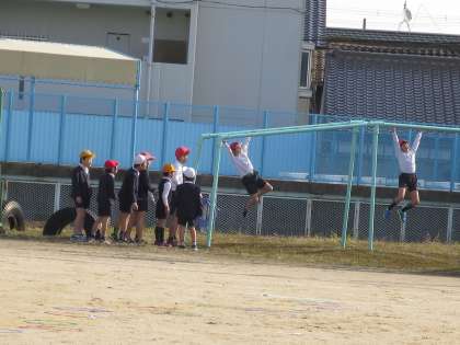 今日から金曜日まで、運動場で「北鶴元気っ子パーク」に取り組みます。色々な運動器具を使って、楽しみながら体力の向上をめざします。今日も多くの児童が楽しそうに挑戦していました。