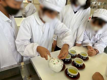 人数分の湯のみ茶碗に一気に注ぐのではなく、少しずつ分量や濃さが同じになるように注ぐことを学習しました。