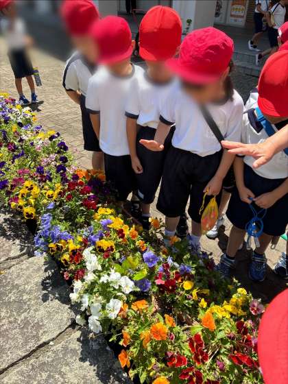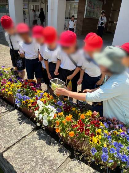 担任の先生と一緒に中庭にはなしに行きました。いつまでも手を振っていたかわいい1年生でした。