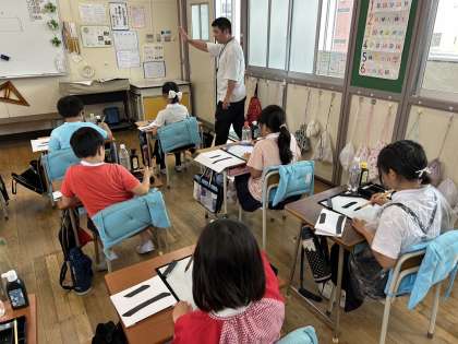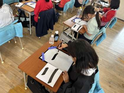 穂先をそろえて、力の入れ方にも気をつけて「ニ」の字を書くことができました。