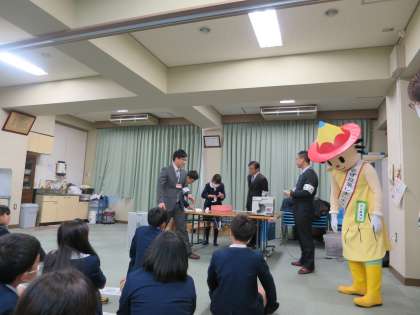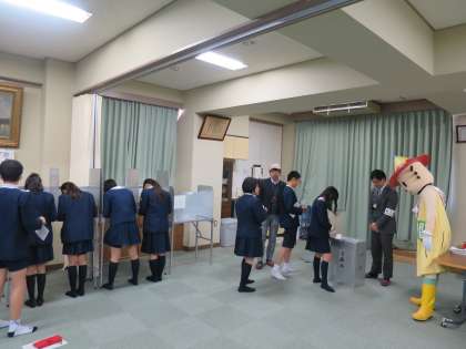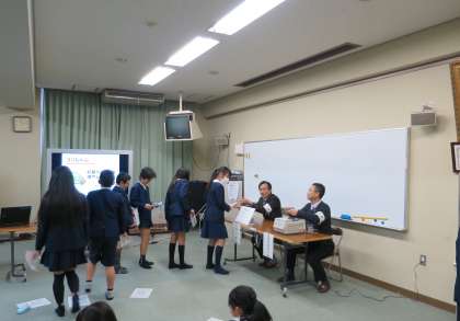 生野区選挙管理委員会からゲストティーチャーをお迎えし、選挙のしくみについてクイズ形式で教えていただきました。また、区のキャラクター総選挙を行い、投票用紙に記入して投票したり開票作業をさせていただいたりしました。ありがとうございました。