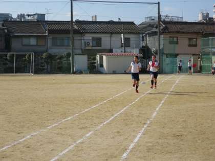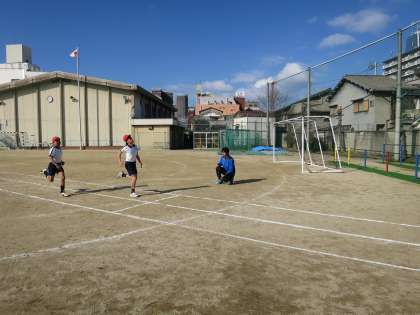 50メートル走の記録を毎学期計測し、記録を残しています。1学期や2学期と比べて自分の記録を見直すことができます。さあ、記録は伸びたかな?
