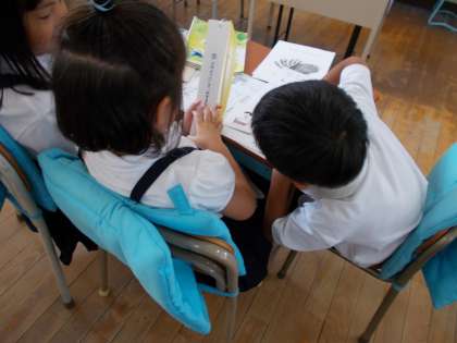今まで学習してきた動物の身の守り方をもとに、文章を読み取り、シールで色分けをしました。