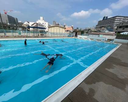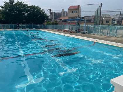 伏し浮きでは、12メートル近く進んだ児童もいました。