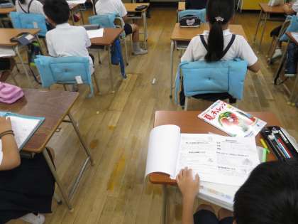 終業式のあとの教室では、先生から通知表や表彰状をもらっていました。