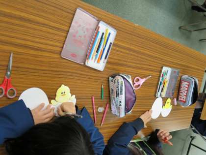 C−netの先生にEasterについて、教えていただきました。かわいいたまごの写真を見せていただいたり、Happy Easterのカードを作ったりしました。外国の文化を知る良い機会になりました。