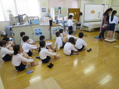 今週は、全学年で発育測定があります。測定の前には、だ液のはたらきについて学習したり、だ液のはたらきをよくする口の体操「あいうべ体操」をしたりしました。
